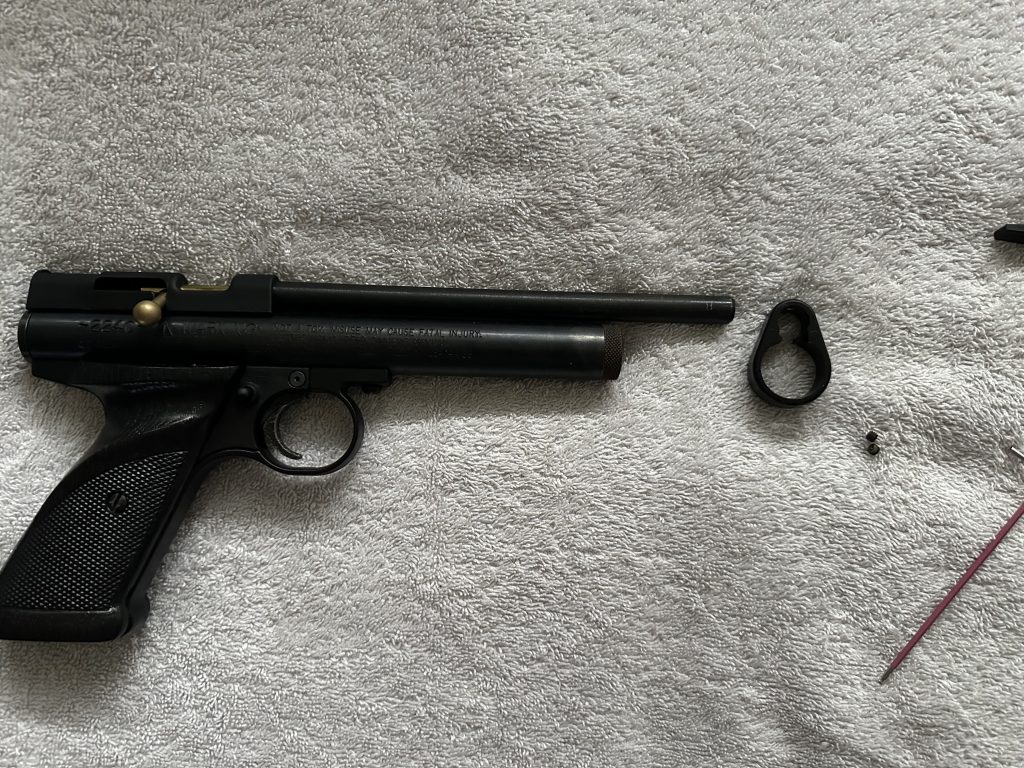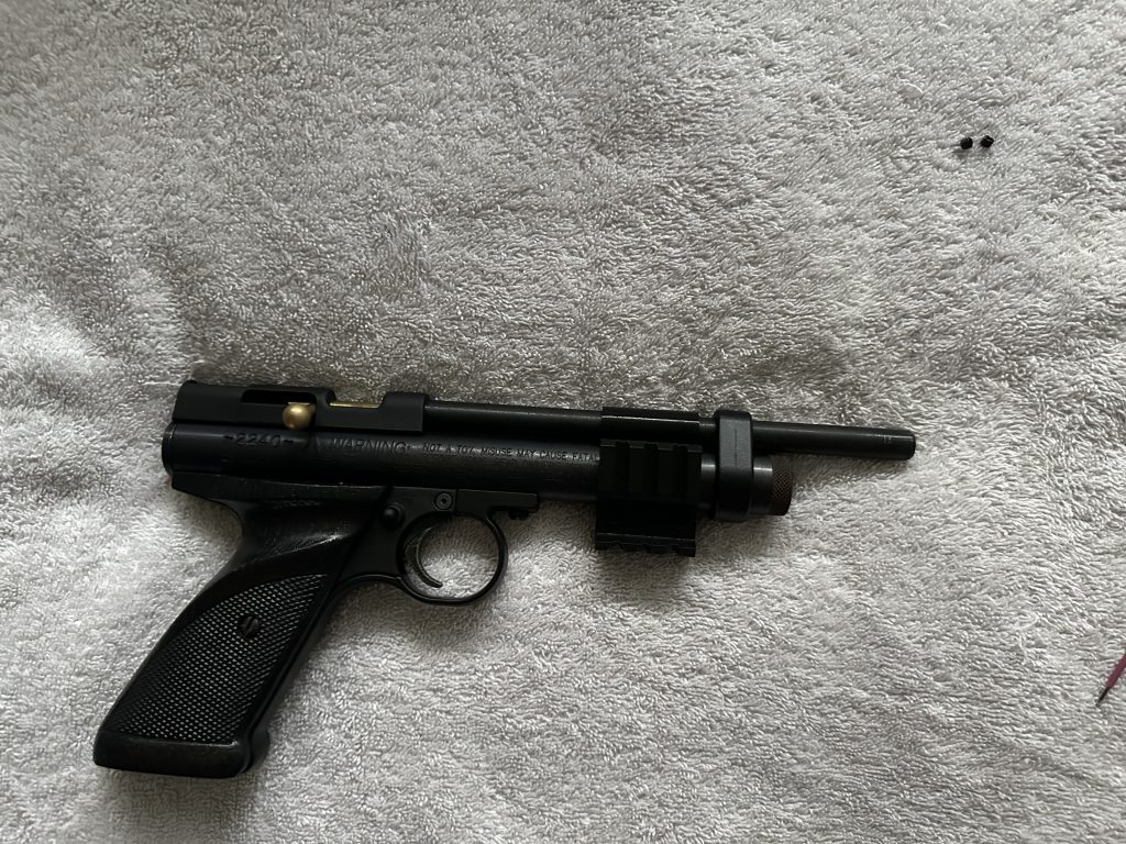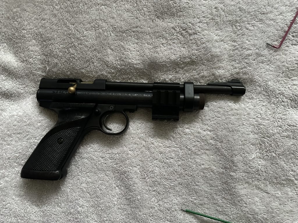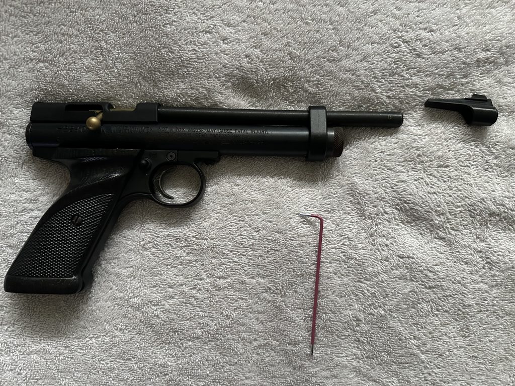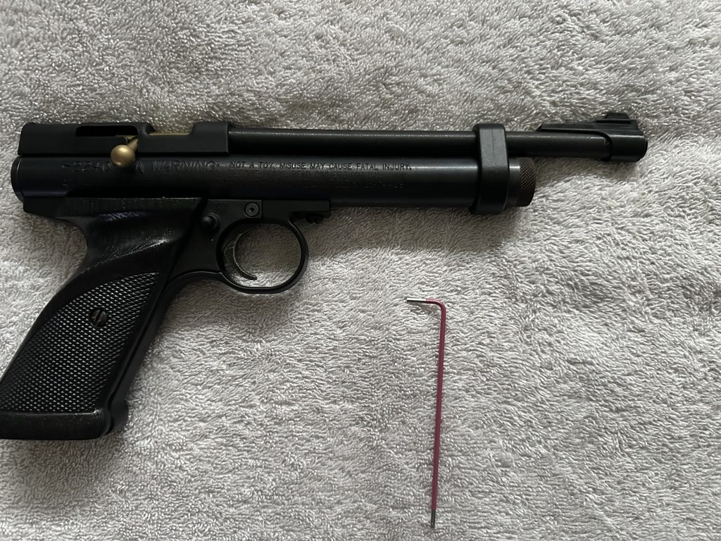 Simply slide the attachment onto your Crosman I would recommend flipping the pistol itself so you can line up the attachment with the line that goes through the screw pictured above.